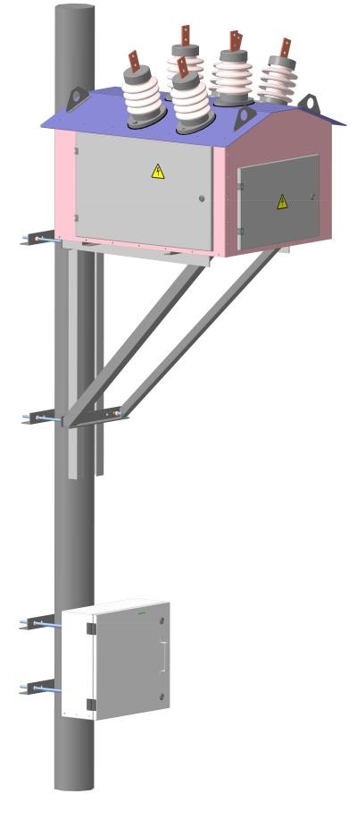 Монтажный комплект входит в состав поставки и должен быть определен в опросном листе при заказе пункта коммерческого учета. Возможна установка высоковольтного модуля на двух опорах. Для удобства обслуживания ПКУ возможно включение в поставку площадки обслуживания.