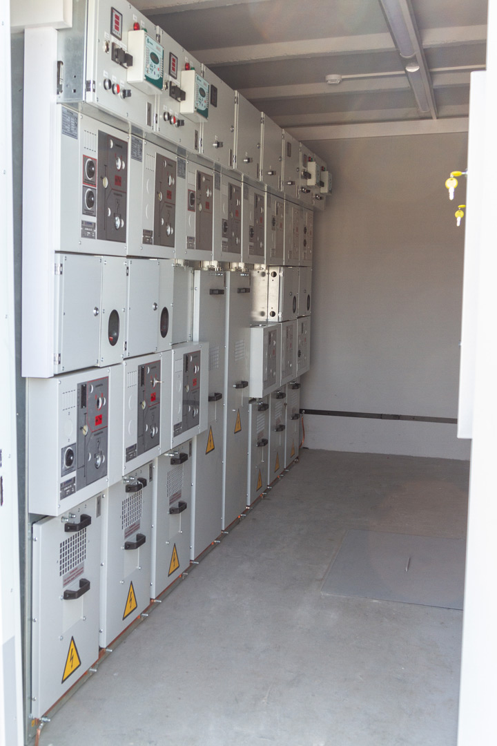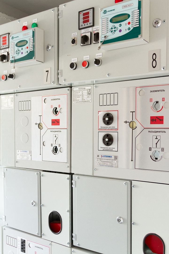 Распределительное устройство низкого напряжения состоит из панелей НКУ Solution. Высокая сторона - из камер сборных одностороннего обслуживания нового образца типа КСО-Energy.