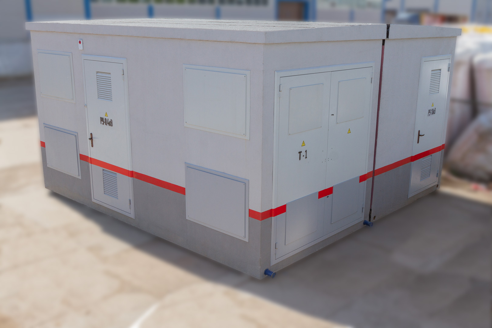 В ходе реализации была разработана и изготовлена двухмодульная блочная трансформаторная подстанция в бетонной оболочке с двумя сухими трансформаторами мощностью 250кВА.