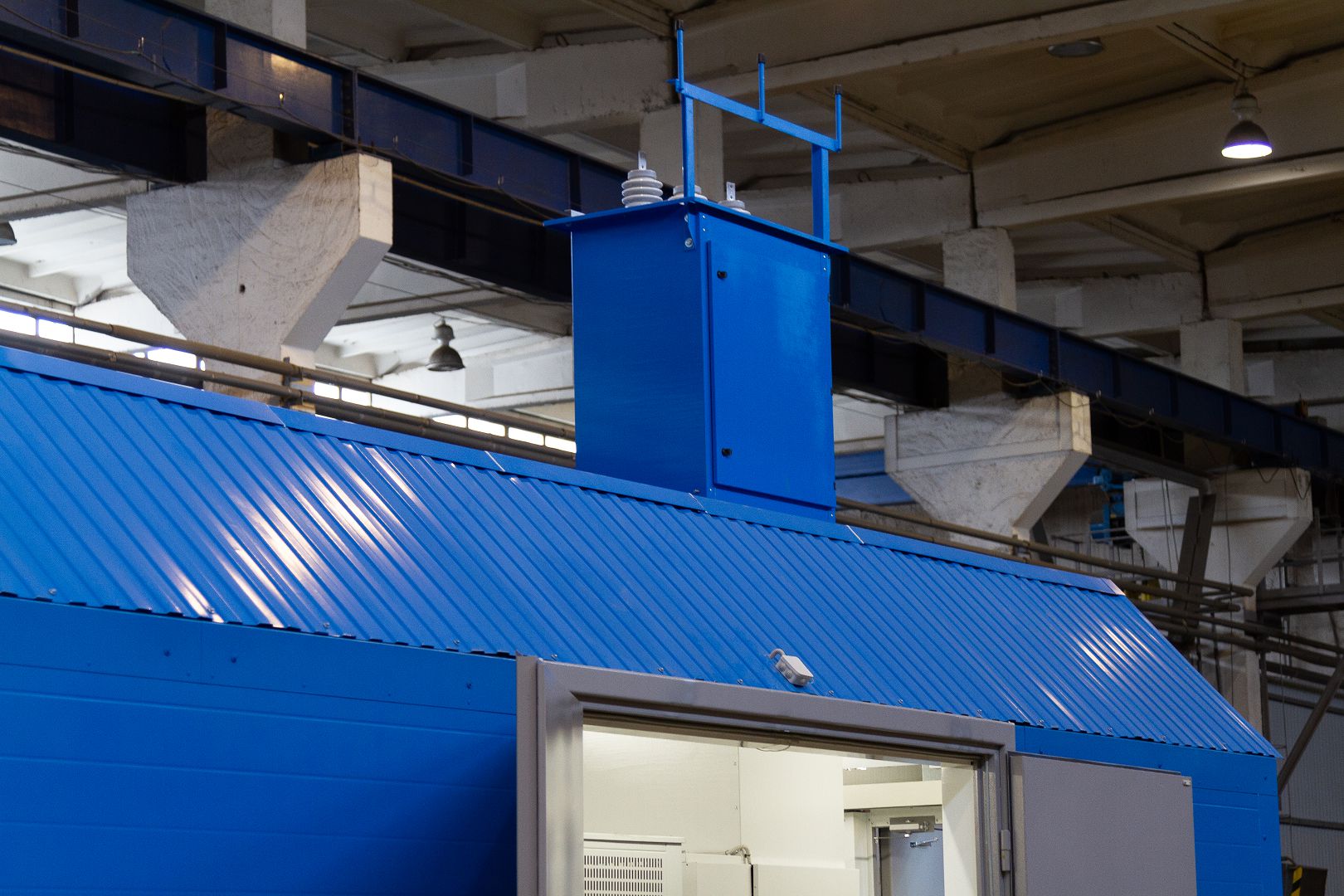 В ходе реализации было разработана уникальная конструкция здания отвечающая всем требованиям заказчика, а также применен сквозной воздушный ввод расположенный непосредственно над распределительным устройством высокого напряжения.